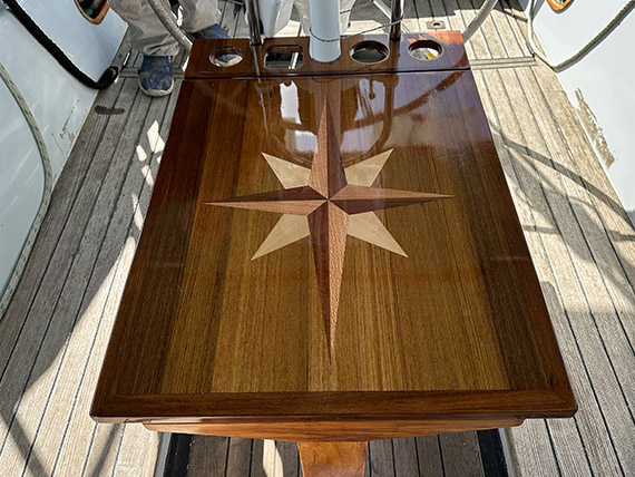 While on the Hardstand Opua boatbuilders were able to pull together a crew to refinish all the brightwork. They all worked tirelessly every time the sun came out and sometimes when it didn’t. Despite serious weather delays they got the job done in a timely manner.